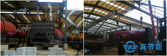烘干機(jī)設(shè)備穩(wěn)穩(wěn)的安裝在根據(jù)真節(jié)能技術(shù)人員工程設(shè)計(jì)圖紙而提前澆注好的柱墩上,整個(gè)吊裝過(guò)程十分順利。